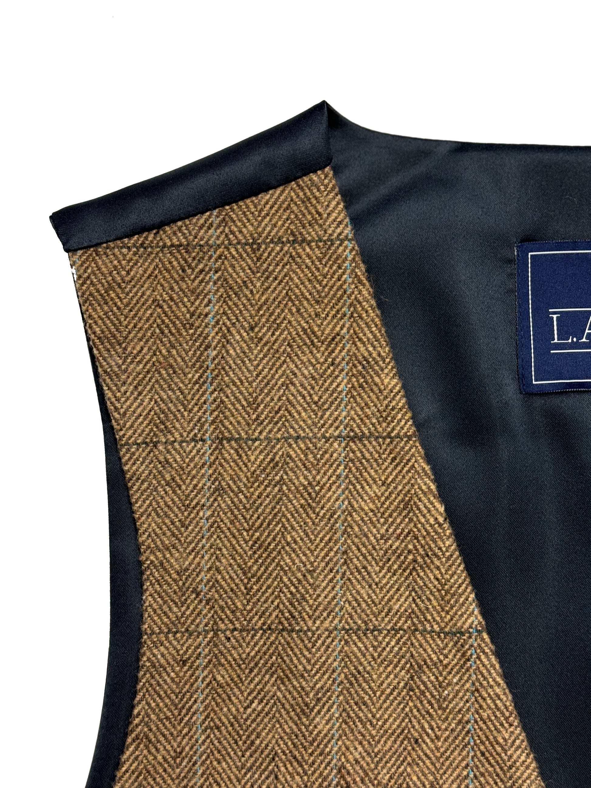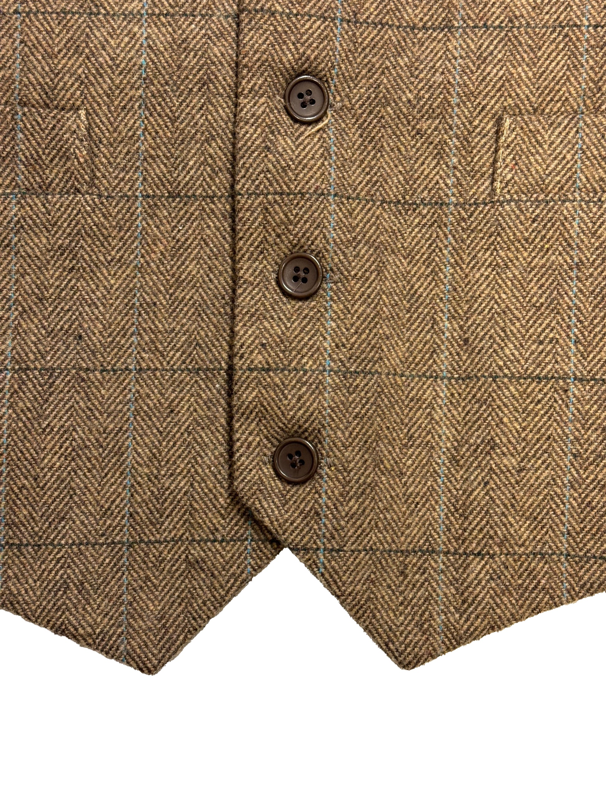 Brown Tweed Herringbone Check Waistcoat | Tailored Fit