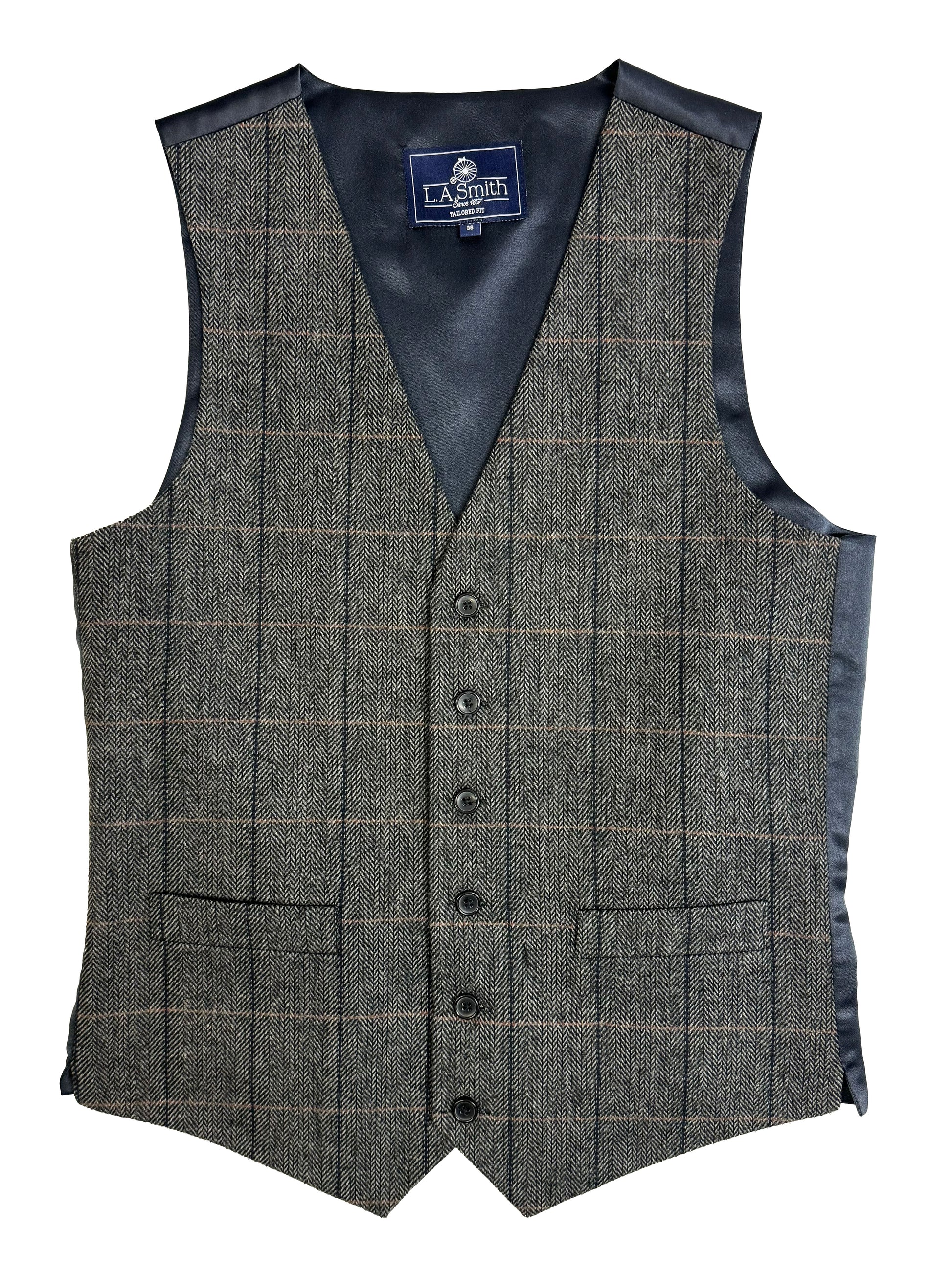 This sophisticated charcoal grey waistcoat showcases authentic tweed craftsmanship with a subtle check weave that adds visual interest without overwhelming formal ensembles. Expertly tailored for a contemporary fit that flatters the torso whilst maintaining traditional styling credentials. The single-breasted design features quality button detailing and an adjustable rear strap system for personalised comfort across varying body types. Perfect for weddings, formal celebrations, and professional occasions demanding understated refinement. The versatile charcoal tone pairs seamlessly with navy, black, or grey suiting, whilst the premium wool-blend fabric ensures durability and longevity. A cornerstone piece for the discerning gentleman's formal collection.