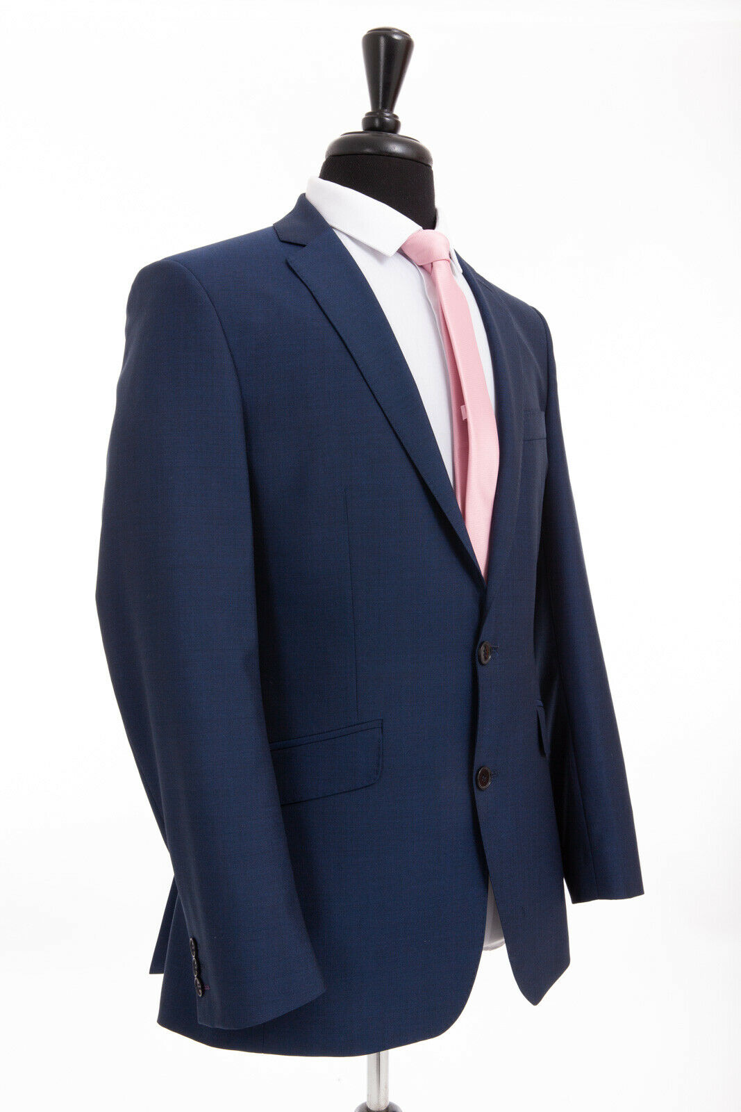 This is our Pierre Cardin three-piece suit in classic navy blue. Crafted from premium wool, this timeless ensemble delivers the sophistication demanded for weddings, business meetings, and formal occasions. The complete set includes a tailored jacket, matching waistcoat, and trousers, offering versatile styling options whether worn together or separately.