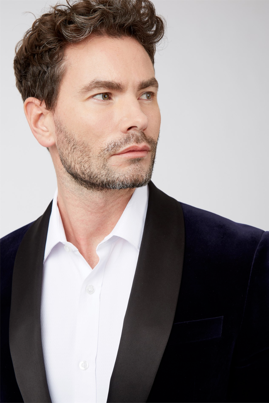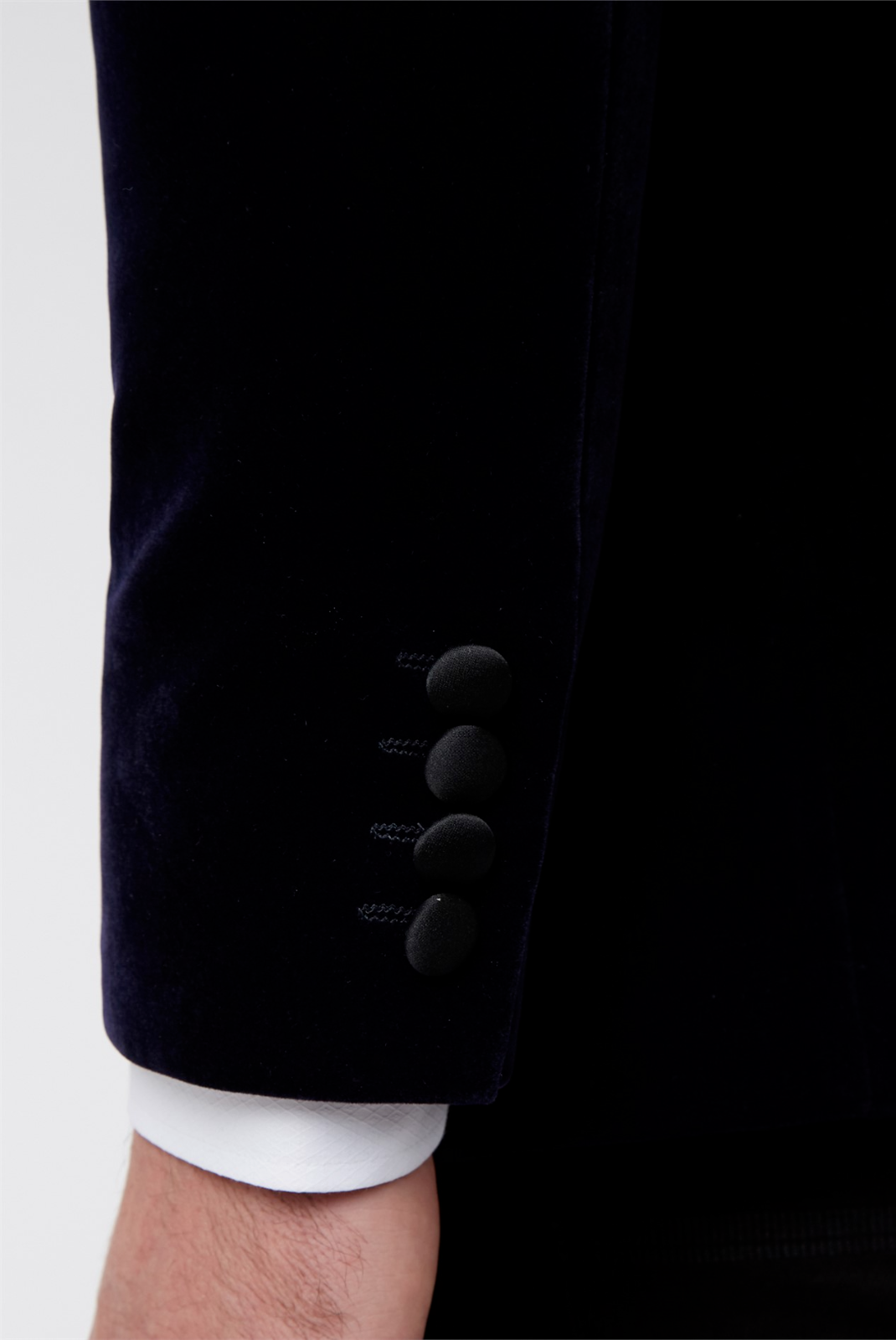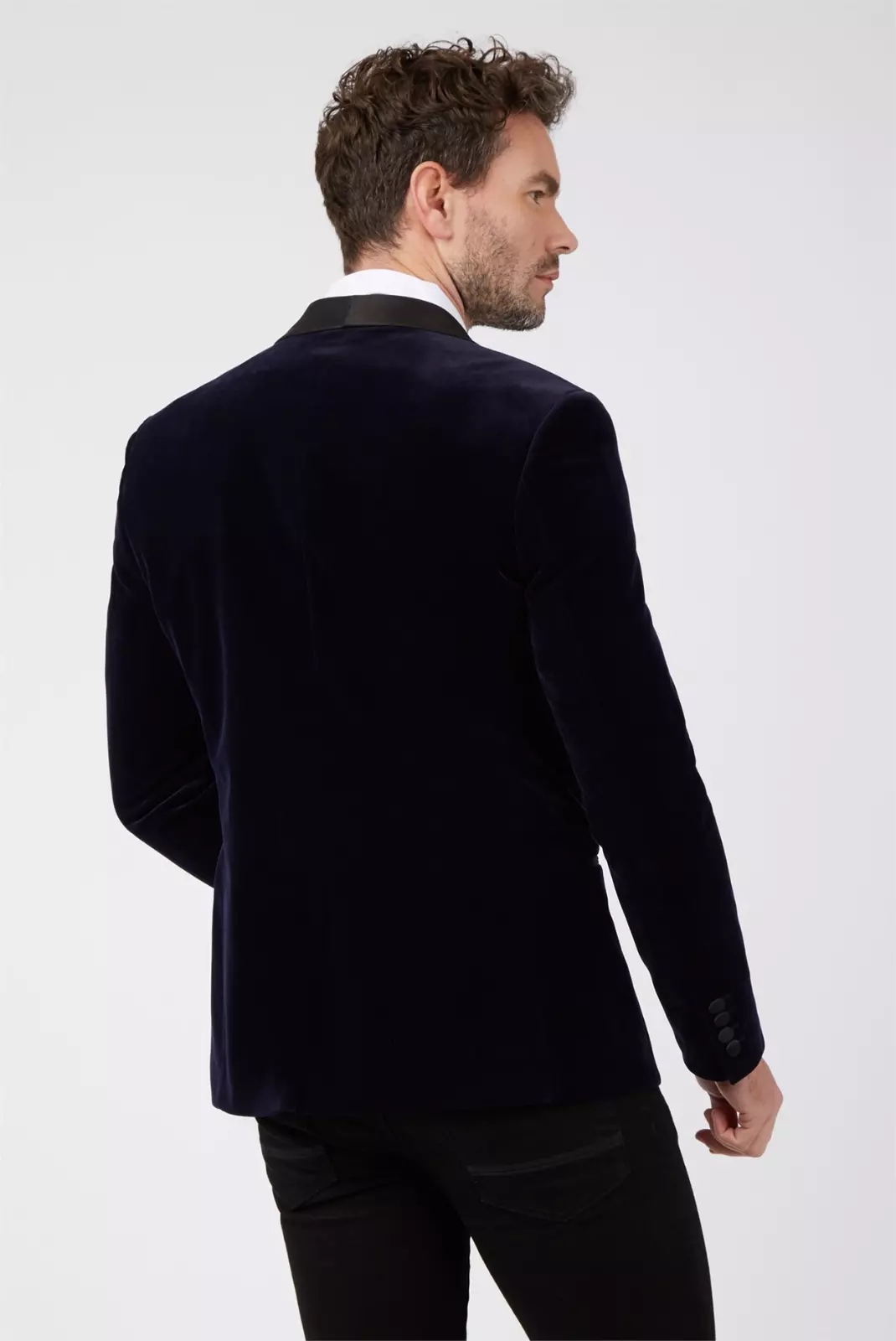 Limehaus Navy Slim Fit Velvet Smoking Jacket Shawl Collar
